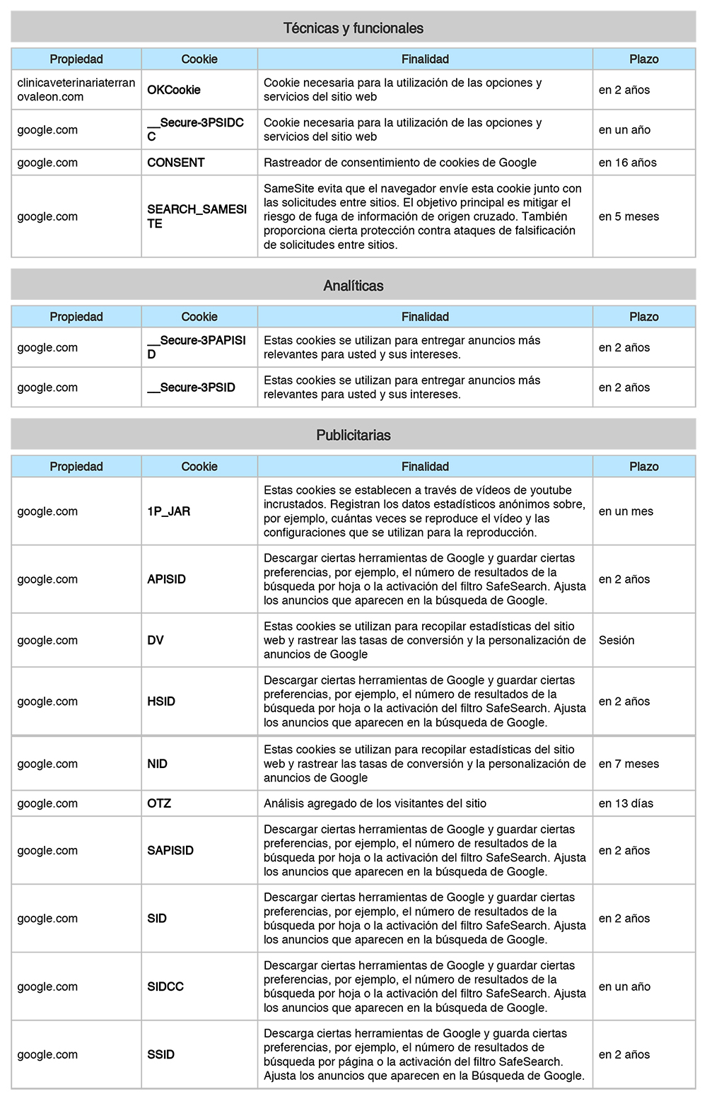 Comunicación de los datos: no se comunicarán los datos a terceros, excepto en cookies propiedad de terceros o por obligación legal.