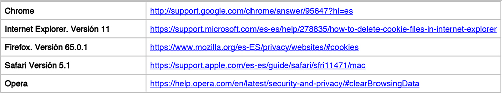 Criterios de conservación de los datos: según se especifica en el apartado de cookies utilizadas en la web.